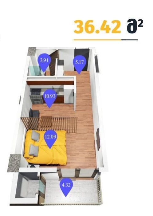 იყიდება, ახალი გარემონტებული , სტუდიოს ტიპის, 1 ოთახიანი ბინა ახალაშენებულ კორპუსში. გორი, ჭალის დასახლება, მერიის მიმდებარედ. 36,42 კვ.მ. მე-6 სართული.
