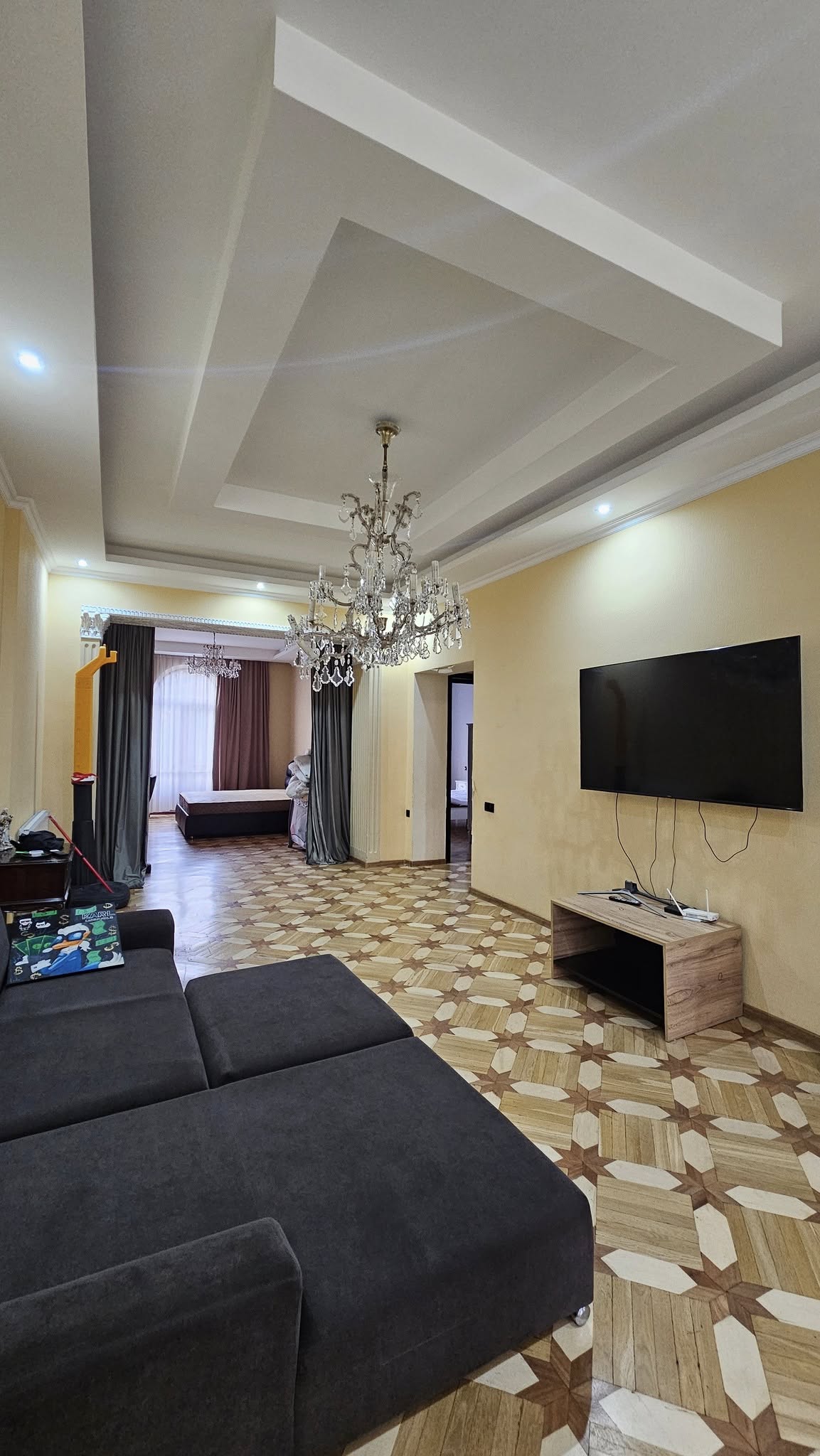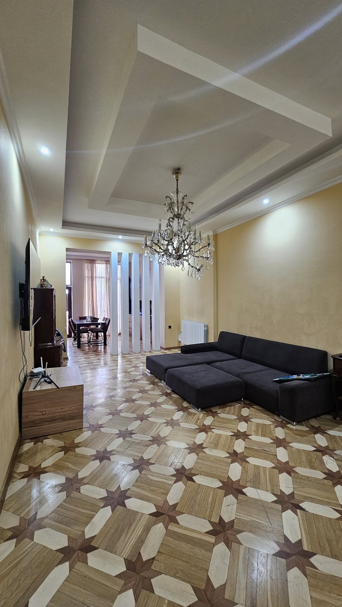 იყიდება ტუფის, 3 ოთახიანი ბინა. გორი, სტალინის გამზირი. 116 კვ.მ. სარდაფით, კაპიტალური ავტოფარეხით. მე-3 სართული.