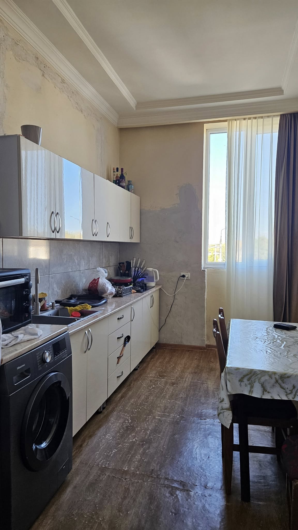 იყიდება არასტანდარტული, 3 ოთახიანი ბინა. გორი, კომბინატის დასახლება, იმედის კლინიკის მინდებარედ. მომატების პერსპექტივით. 63 კვ.მ. + 13 კვ.მ. მიშენება. მე-3 სართული.